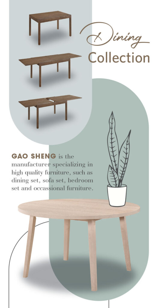 Gao Sheng is the manufacturer specializing in high quality furniture, such as Dining Set, Sofa Set, Bedroom Set and Occassional furniture.