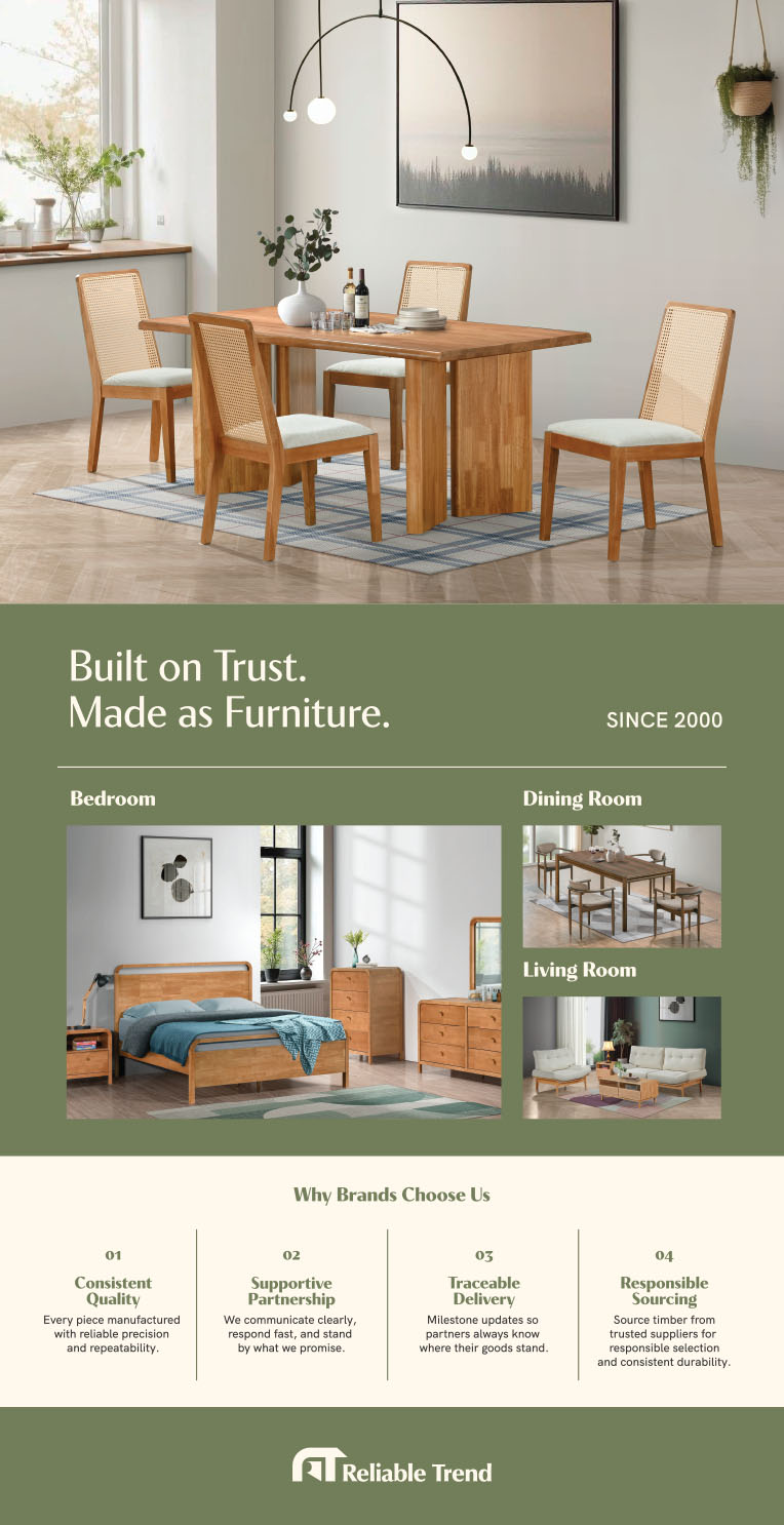 RELIABLE TREND had been involved in the manufacturing of furniture since 2000. Over the years, Reliable Trend has established its reputation as a quality and efficient furniture manufacturer specializing in Kitchen, Living and Dining Room furniture.